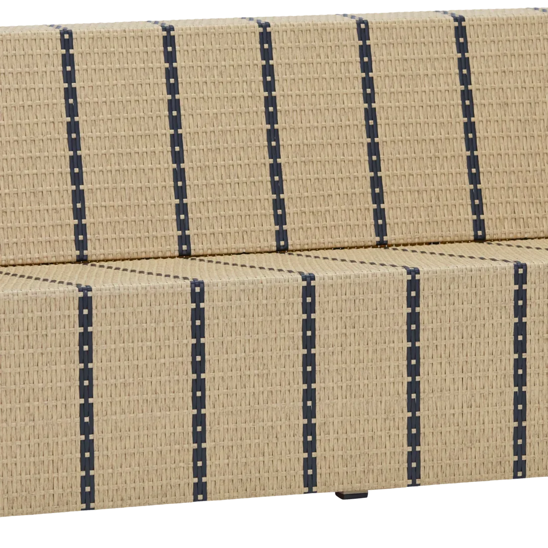 Entscheidend ist dabei nicht die Menge an Dekoration, sondern deren gezielte Platzierung. Ein schwarz-weiß gestreifter Sonnenschirm wie das Modell „Minoa“ bringt sofort eine Assoziation von Riviera und Beach Club ins Spiel, ohne aufdringlich zu wirken. Ergänzt wird dieser Effekt durch einzelne, bewusst gesetzte Objekte wie eine monochrome Skulptur von HKLiving, die fast wie ein Kunstwerk im Außenraum funktioniert. Selbst kleinere Details wie der gestreifte Toppu-Übertopf von OYOY zeigen, wie stark grafische Elemente wirken können, wenn sie nicht von anderen Farben konkurriert werden.