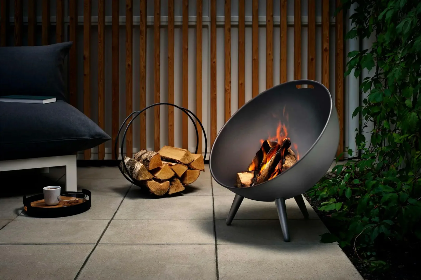 Ihre Halbkugelform aus emailliertem Stahl und Aluminium betont einmal mehr die Archaik: Ausgestattet mit einem praktischen Griff für mehr Mobilität, hat die Feuerschale die Flammen fest in der Hand.