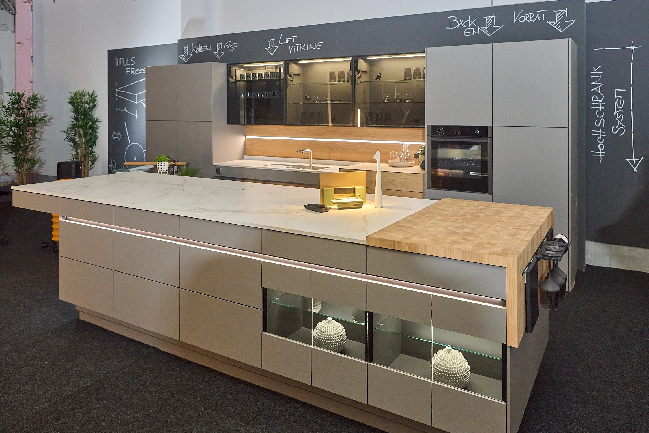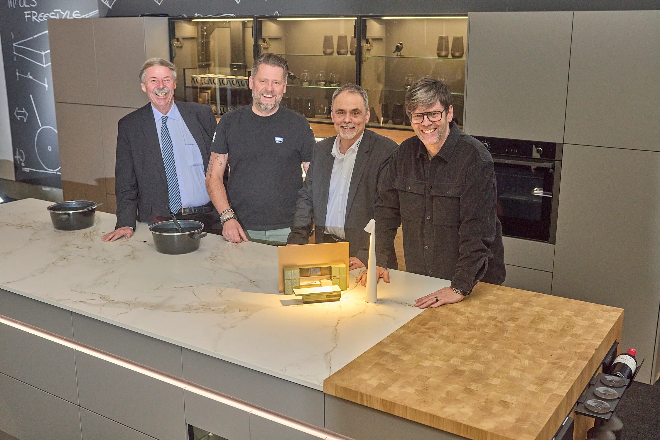 Im Mittelpunkt der Präsentation stand ein Prototyp, der zeigt, wie zeitgemäße Küchenarchitektur aussehen kann. Entworfen vom deutschen Designer Hans Winkler, setzt das Konzept auf eine höhenverstellbare Kochinsel als zentrales Element. Sie lässt sich stufenlos an unterschiedliche Körpergrößen anpassen und ermöglicht damit sowohl das Arbeiten im Stehen als auch komfortables Kochen im Sitzen.