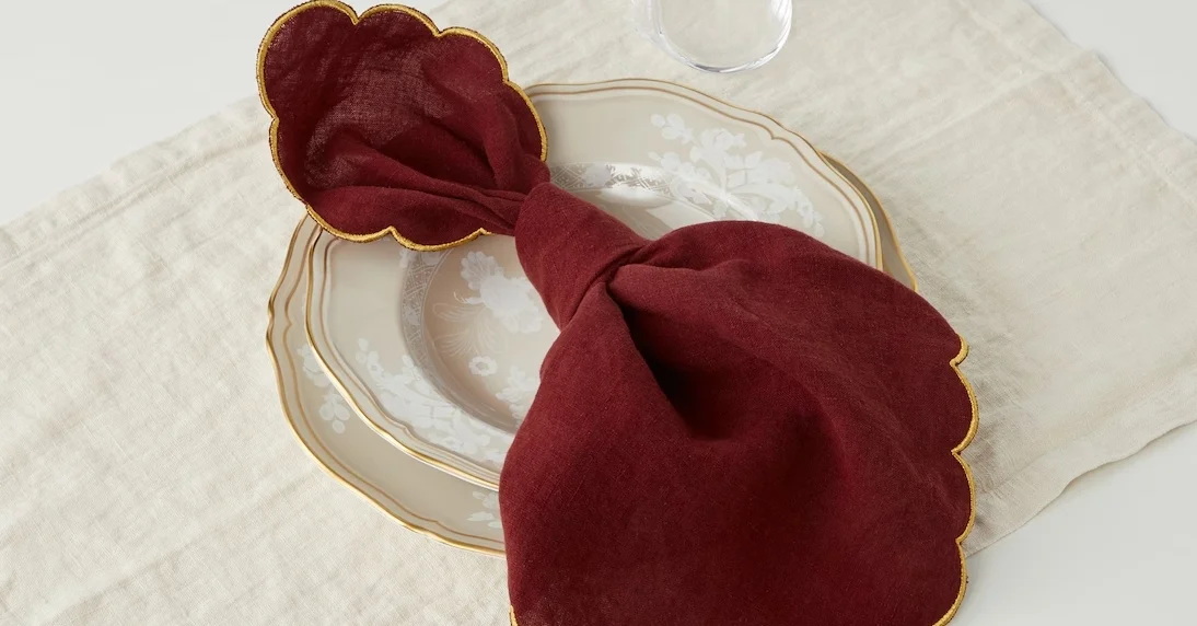 Kaum ein Element bringt mehr Behaglichkeit in ein Tischarrangement als hochwertige Servietten. Die burgunderfarbenen Leinenservietten von Once Milano setzen kraftvolle, warme Farbakzente und verleihen dem Tisch Tiefe und Struktur.
