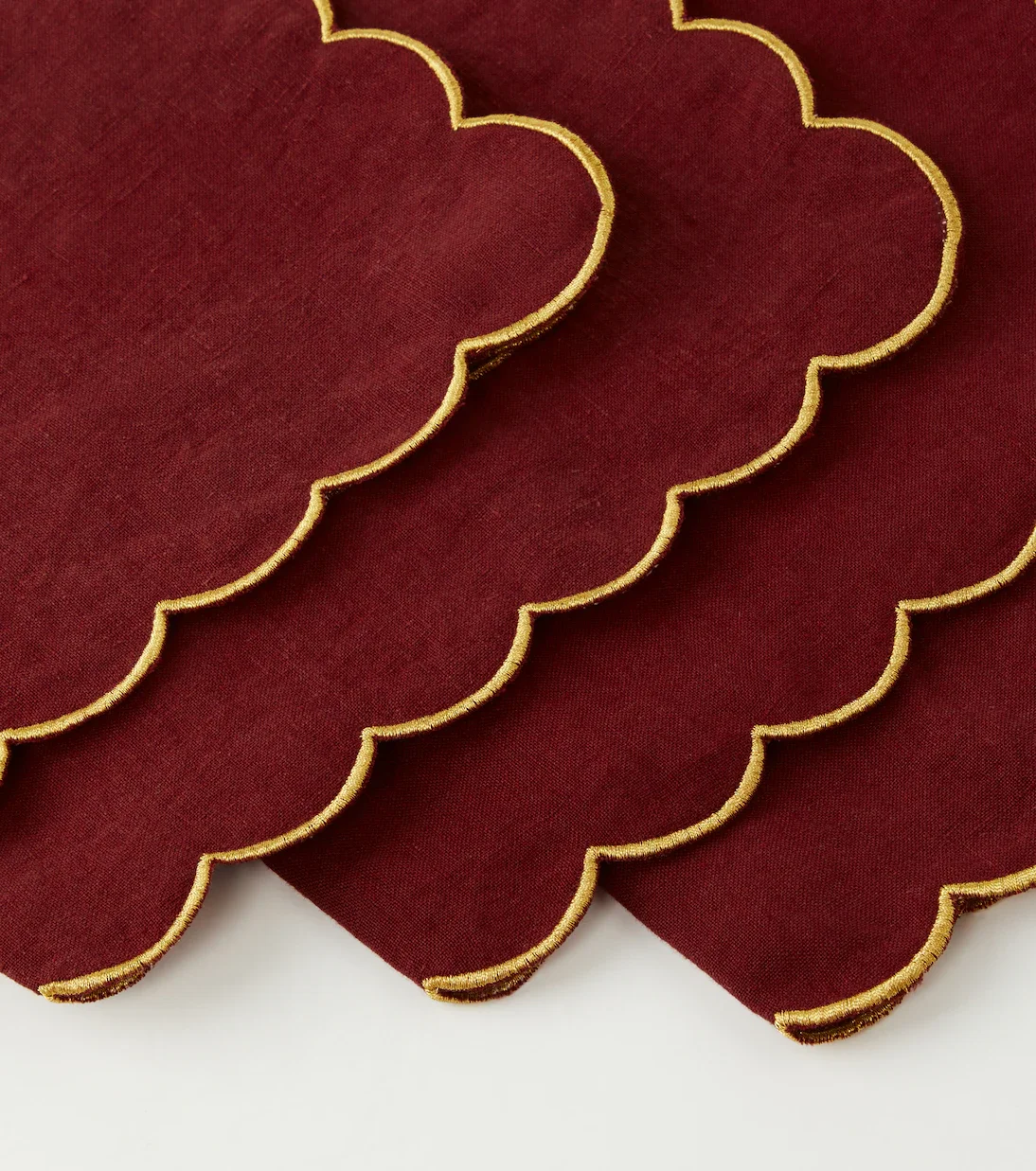 Warme Texturen: Serviettenset aus burgunderfarbenem Leinen von Once Milano