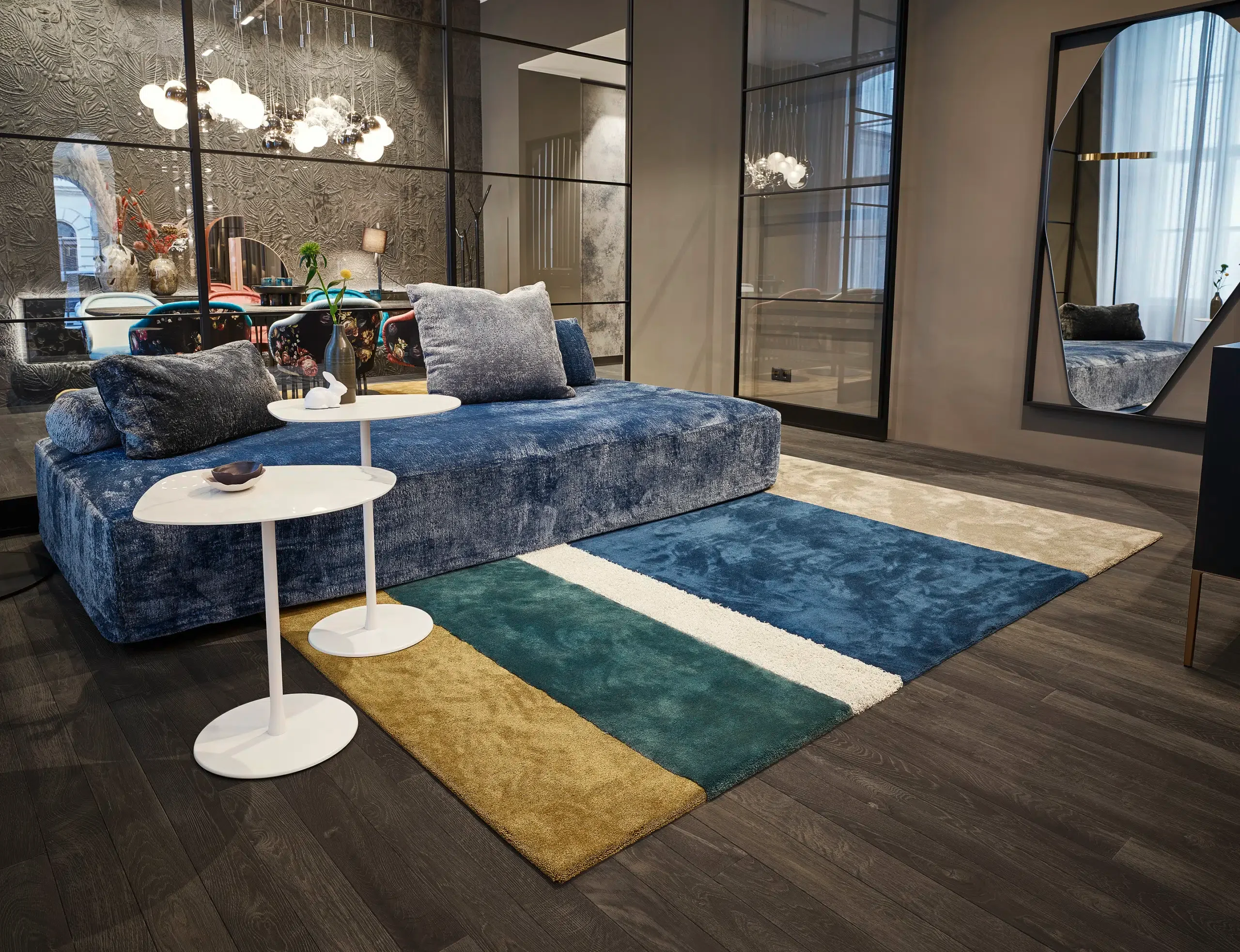 Ein anderes Verständnis von Teppich zeigt die österreichische Marke miroo, deren Linie Stripe Räume neu strukturiert – mit Farbe, Rhythmus und Frische.