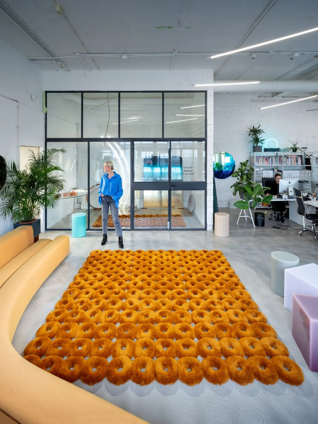 Und dann wäre da noch Sabine Marcelis, die wohl spielerischste Stimme im zeitgenössischen Design. Die niederländische Künstlerin hat für CS Rugs einen Teppich aus miteinander verbundenen „Donuts“ entworfen – ein sinnliches Statement aus Material, Form und Humor.