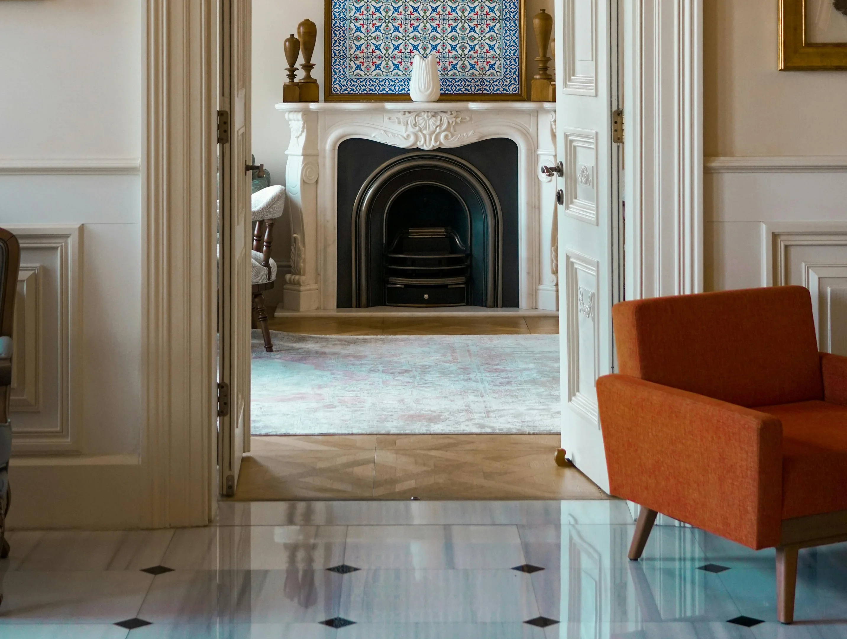 Art Déco kann sowohl in Wohnzimmern als auch in Schlafzimmern oder Fluren elegant umgesetzt werden. Ein Wohnzimmer mit dunkelgrünem Samtsofa, goldenen Beistelltischen und einem geometrischen Teppich etwa vereint Luxus und Modernität. In einem Schlafzimmer lässt sich der Stil durch ein gepolstertes Kopfteil, zarte Metallic-Akzente und gedämpftes Licht in eine ruhige, elegante Atmosphäre übersetzen.