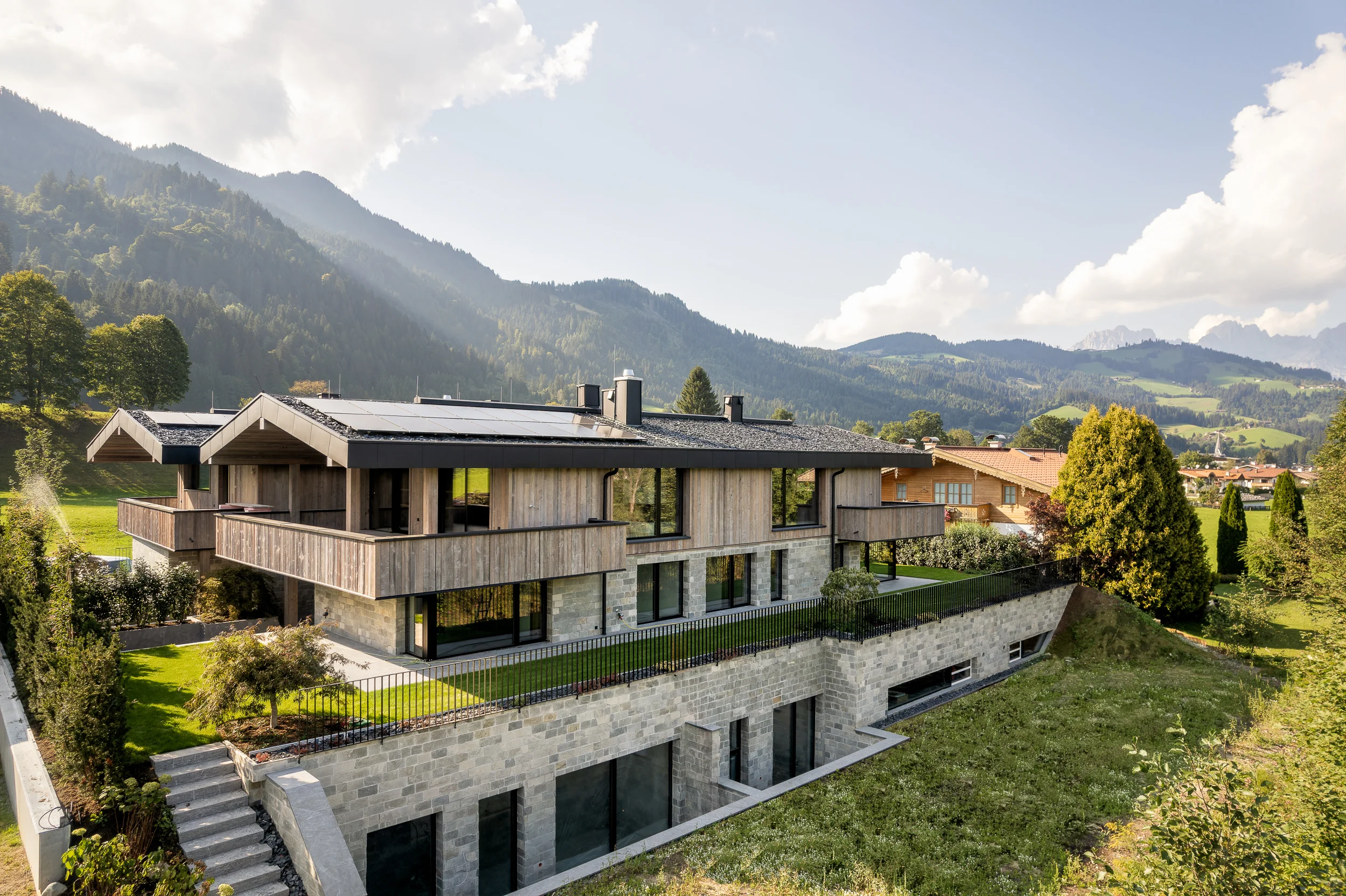 Das absolute Premium-Objekt der Region ist die Highend-Villa „the hills" in Reith bei Kitzbühel. Die Neubauresidenz mit rund 1.100 Quadratmetern verbindet zeitgenössisches Design mit alpiner Authentizität. Zur Ausstattung gehören ein 12 Meter langer Außenpool, bodentiefe Panoramafenster, eigene Spa- und Fitness-Bereiche sowie eine Tiefgarage für bis zu neun Fahrzeuge – Luxus ohne Kompromisse.