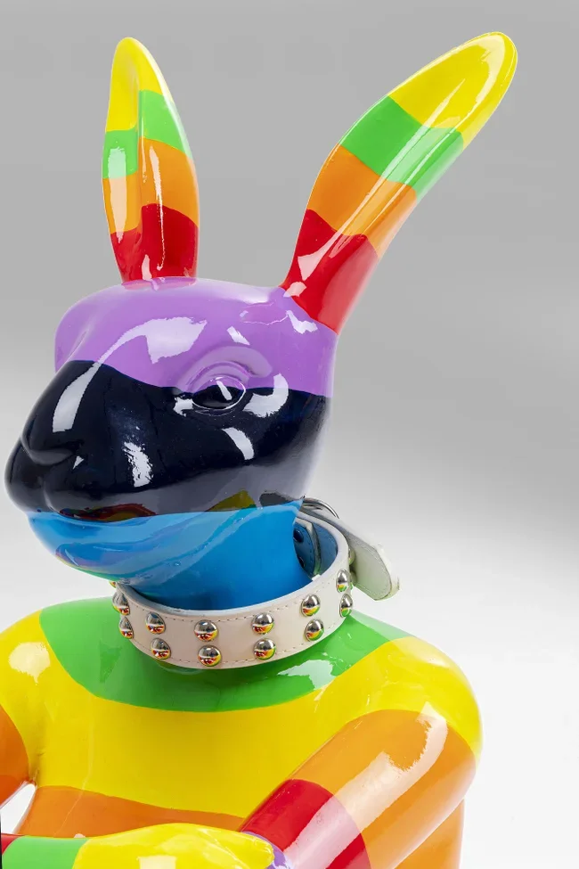 Großformatig, schillernd und selbstbewusst: Diese Hasenfigur ist alles andere als zurückhaltend. Mit ihrer Rainbow-Optik wird sie zur popkulturellen Skulptur, die Räume energetisch auflädt und klassische Wohnkonzepte bewusst bricht.