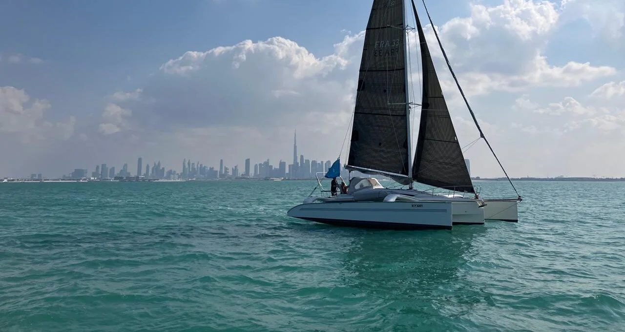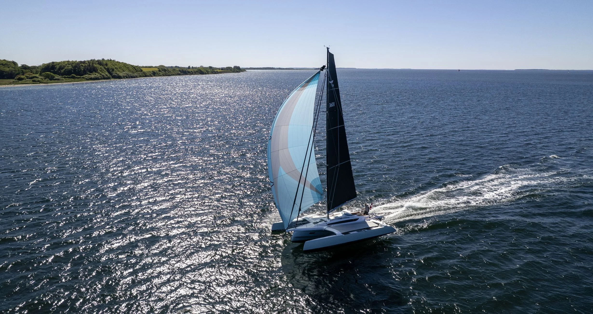 Mit einem Topspeed von bis zu 23 Knoten gehört er zu den schnellsten Serienyachten weltweit. Möglich wird das durch eine konsequent auf Effizienz ausgelegte Konstruktion mit Karbonmast, schlanken Rümpfen und sogenannten Wavepiercer Bugs, die auch bei hoher Geschwindigkeit Stabilität bieten.