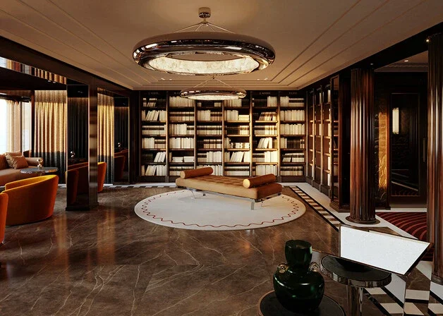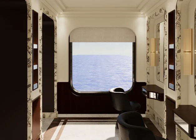 Das Konzept verbindet klassische Seefahrt mit der Logik eines Luxushotels. Insgesamt 54 Kabinen, davon 48 Suiten und sechs Premium-Suiten, verteilen sich über mehrere Decks und öffnen sich mit Panoramablick zum Meer. Fünf Restaurants, darunter „La Table de l’Orient Express“ unter der Leitung von Sternekoch Yannick Alléno, definieren das kulinarische Niveau. Ergänzt wird das Angebot durch acht Bars, ein Spa, einen Pool, ein Kino und ein Detail, das man auf einer Segelyacht nicht erwarten würde: ein professionelles Aufnahmestudio.