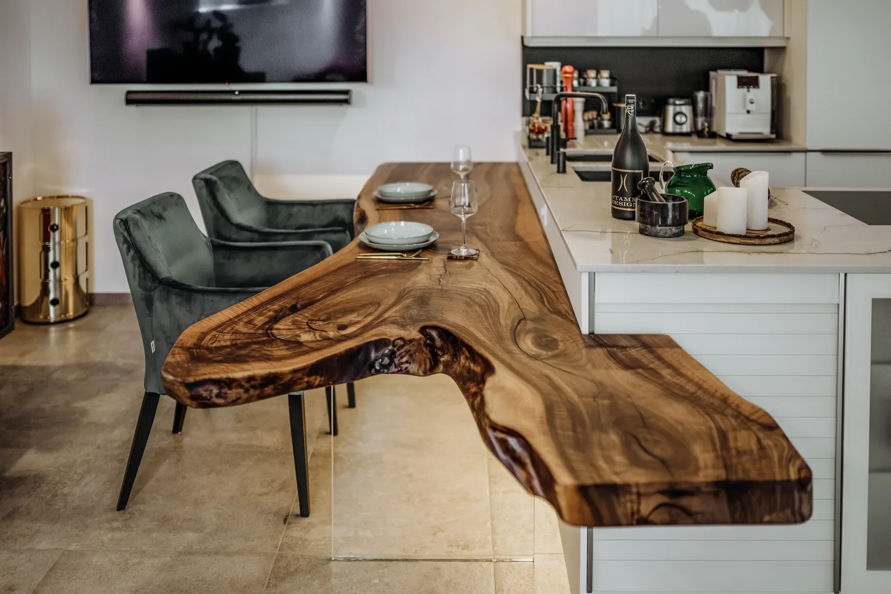 Die österreichische Marke By Nature & Knopp verbindet Massivholz mit individueller Handwerkskunst. Jeder Tisch ist ein Unikat: Maserung, Farbe und Form des Holzes werden bewusst in Szene gesetzt. Die Besonderheit liegt in der Reduktion auf natürliche Materialien bei gleichzeitig präziser Verarbeitung. Das Design wirkt warm, elegant und authentisch. Diese Stilrichtung spricht eine luxuriöse Zielgruppe an, die Natürlichkeit, Individualität und langlebige Qualität schätzt.