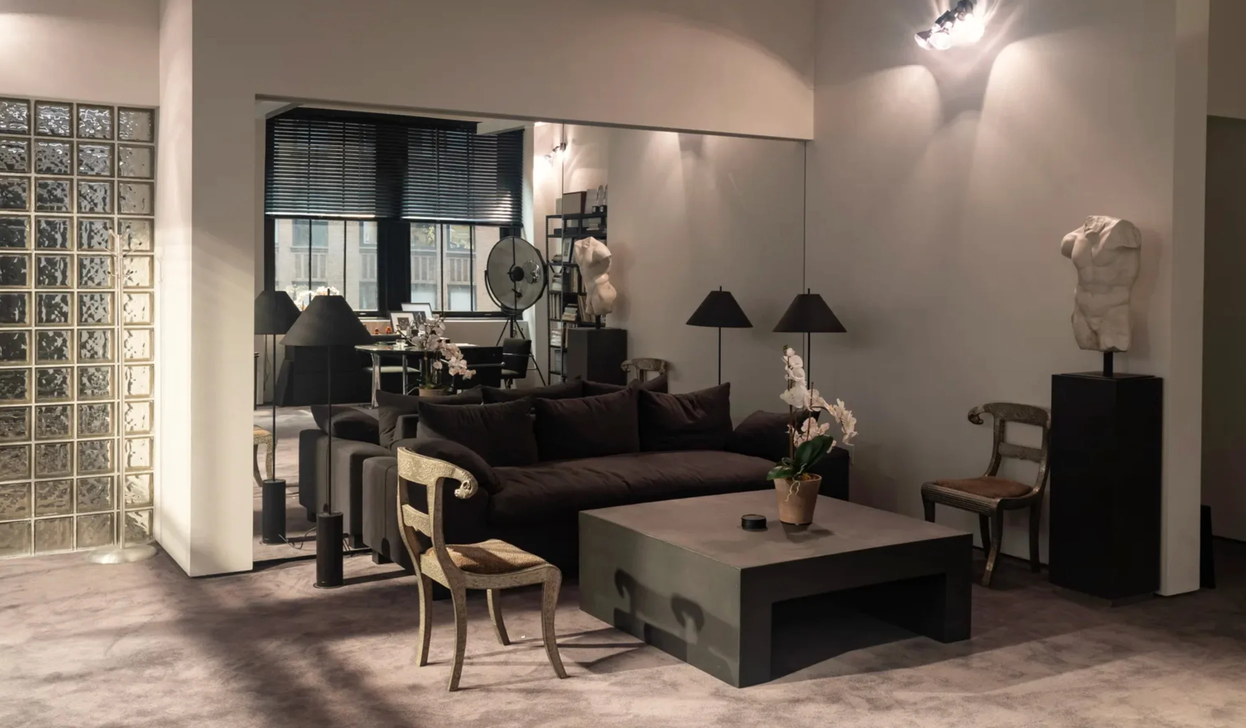 Für die Rekonstruktion orientierte sich das Team an zwei zentralen Referenzen: dem britischen Architekten John Pawson, einer Schlüsselfigur der Minimalismus-Bewegung, und dem amerikanischen Interior- und Möbeldesigner Joe D'Urso, der die originalen Calvin-Klein-Büros eingerichtet hatte. D'Ursos Markenzeichen: Hightech-Minimalismus, bei dem industrielle Materialien in bürgerliche Räume wandern.