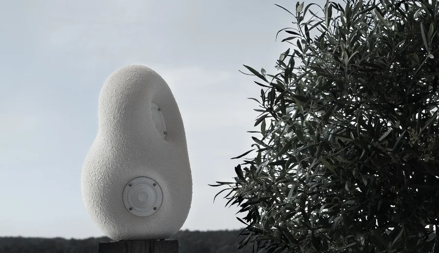 Die bauliche Geschlossenheit verleiht der Form eine akustische Klarheit: Das Klangbild tritt unaufgeregt hervor, eingebettet in eine Struktur, die technische Komponenten beinahe unsichtbar macht. So entsteht ein Objekt, das nicht beschallt, sondern begleitet – ein leiser Dialog zwischen Form, Material und Atmosphäre.