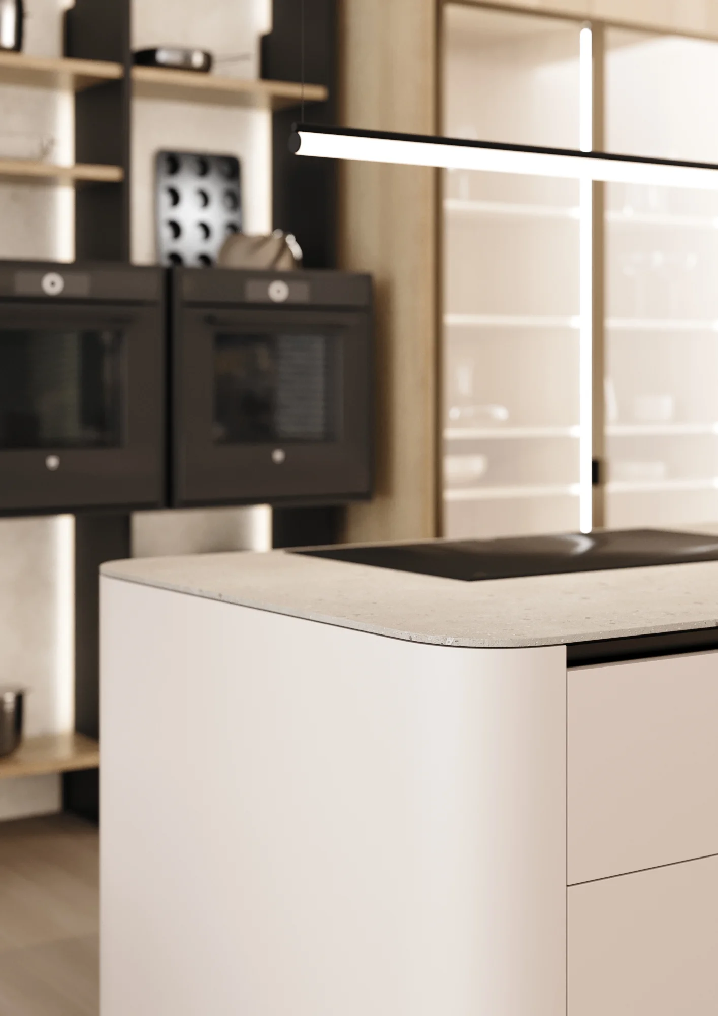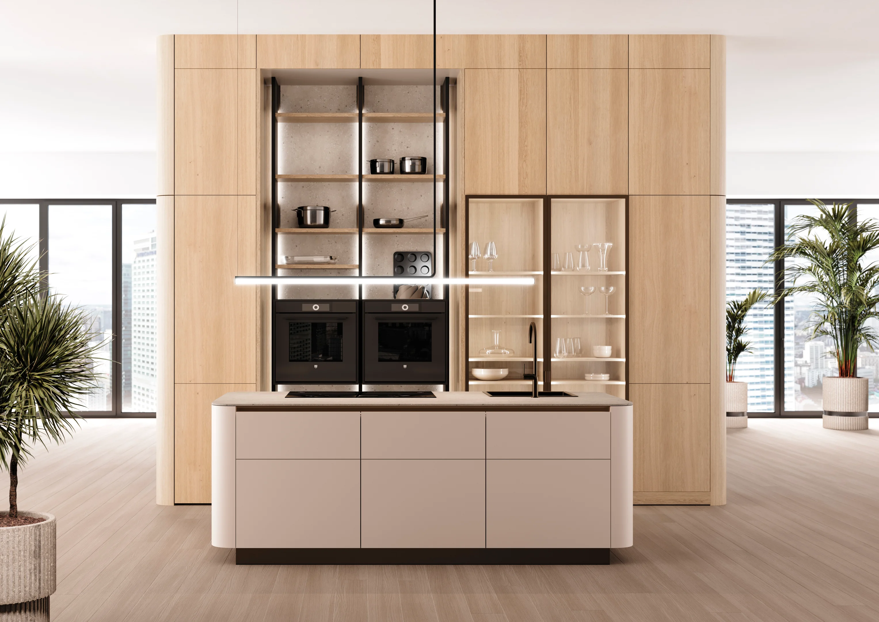 Wer es weich-organisch mag, hat 2025 gute Karten. Denn dezente Naturfarben wie Beige, Salbei und Olive sowie warme Gold- und Bronzetöne sind in die Küchen eingezogen. In denen es außerdem buchstäblich rundgeht, wie auch die neuesten Modelle von SieMatic und Leicht zeigen: Die SieMatic SG6 hat mit ihren warmen Holzoberflächen und organischen Rundungen heuer gleich vier Designpreise abgeräumt. Bei Leicht setzt man ebenfalls auf schöne Kurven: Mit neuen Rundwangen geben die Hersteller der Architekturküchen ihre Antwort auf die Nachfrage nach organischen Interieurs. Die abgerundeten Kanten sorgen im gesamten Mattlack- und einigen Holzprogrammen für sanfte Übergänge und schaffen ein optisches Zusammenspiel von Kochen, Essen und Wohnen.