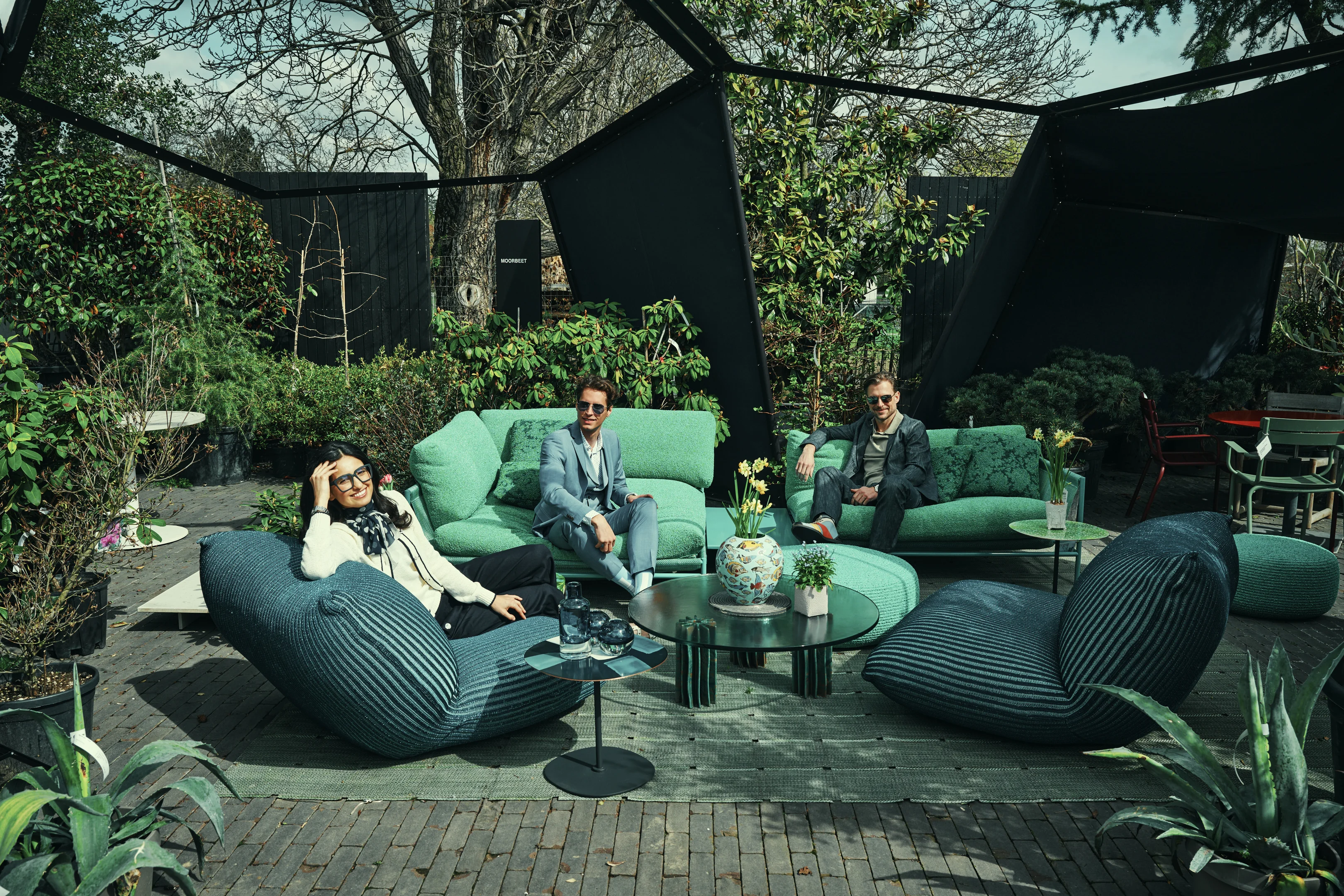 Besondere Dynamik erhält die Strecke durch das Spiel mit Volumen. Der ikonische Loungechair „Float“ und der weiche Pouf „Tobbit“ kontrastieren mit der geometrischen Klarheit der Lounge „Canvas“ und der vielseitigen Sitzgelegenheit „Otto“. Unterstrichen wird diese Ästhetik durch textile Strukturen, wie sie der Teppich „Net“ bietet.
