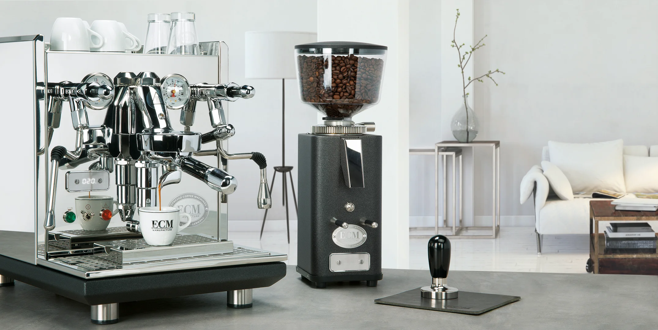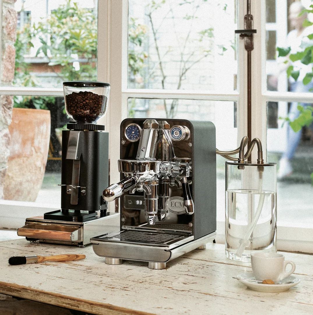 Ein perfektes Duo mit Mühle: Die kleinste Espressomaschine der Marke mit externem Glaswasserbehälter bringt mit dem Fast-Heat-up-Modus den Kaffeegenuss schnell auf Touren.