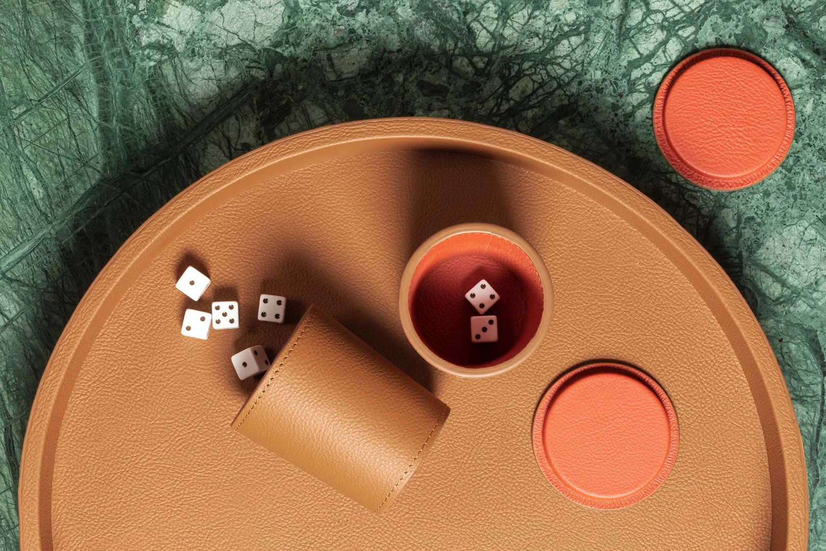 Ganz gleich ob Backgammon, chinesisches Schach, Würfelset, Kartenspiel oder Mah-Jongg: Giobagnara hat alles in Pelle Frau Leder, Ahorn- oder Walnussholz verpackt.