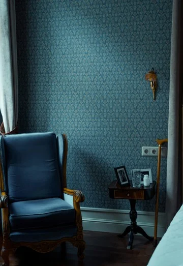 Der einfachste Einstieg ist ein dominantes Hauptmuster – zum Beispiel eine Tapete oder ein Stoff. Dieses Motiv dient als Grundlage und wird im Raum wiederholt, etwa auf Vorhängen, Polstern oder Teppichen.