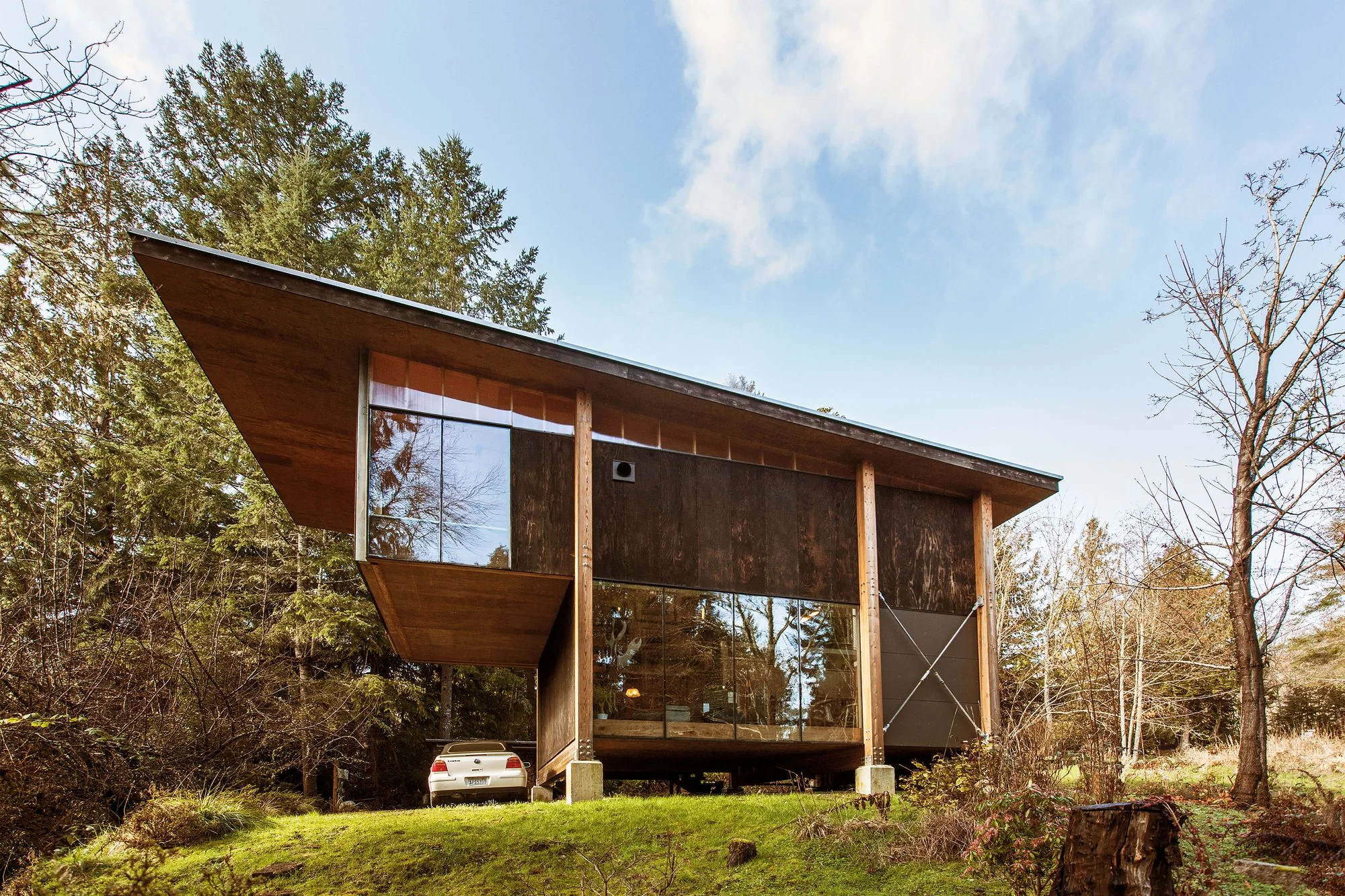 Der Unterstand „Primeo" in der Schweiz ist ein Lehrstück in Materialehrlichkeit: Stahlkonstruktion und verzinkte Trapezblechhülle stammen vollständig aus zwei Rückbauprojekten, lediglich Tür und Tore wurden neu ergänzt. Die Individualität der Altteile zwang das Planungsteam zu maßgeschneiderten Verbindungen – ein Paradebeispiel dafür, wie Wiederverwendung nicht zu schlechteren, sondern zu neuen Details führt.