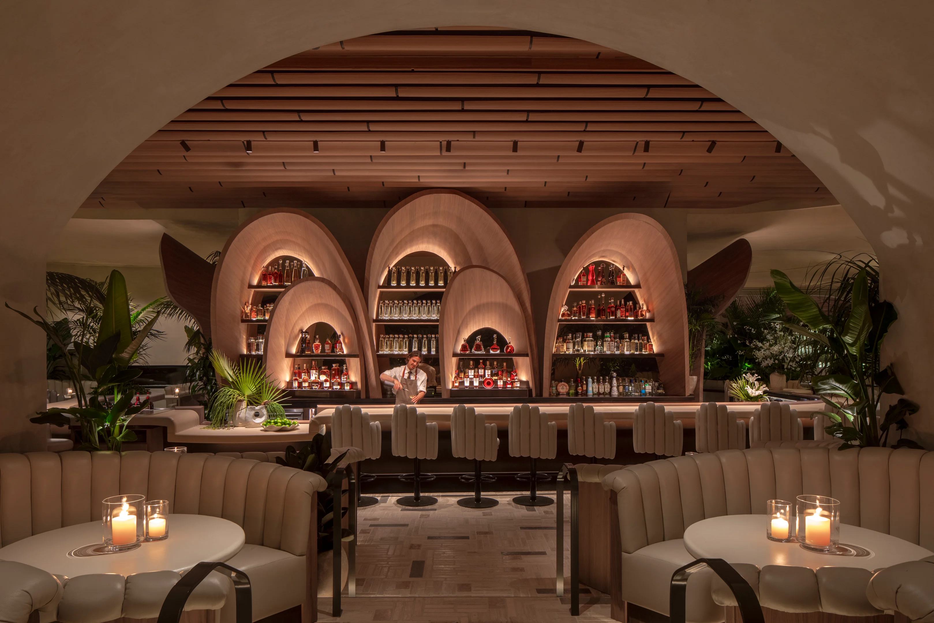 Gestaltet wurde das Restaurant von der Rockwell Group, einem international renommierten Studio mit Sitz in New York, Los Angeles und Madrid. Gegründet von David Rockwell, ist das Büro bekannt für Projekte, die Architektur mit performativem Design verbinden. Jedes Projekt wird als Bühne verstanden – eine Inszenierung, bei der Raum, Licht und Nutzung eine Einheit bilden.