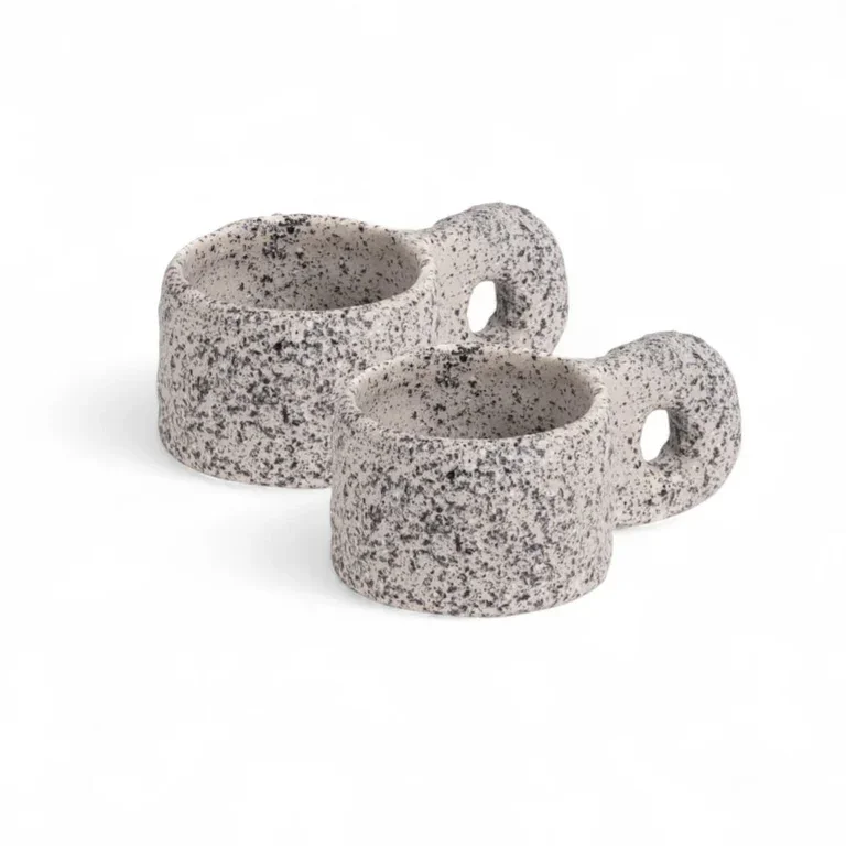 Die Newlithic Kaffee-Tassen Set von Eye on Design verbindet organische Formen mit moderner Porzellanästhetik. Die Tassen erinnern an kleine Skulpturen und setzen bewusst auf ungewöhnliche Proportionen und klare Linien. Dadurch wird der Kaffeegenuss zu einem visuellen Erlebnis.
