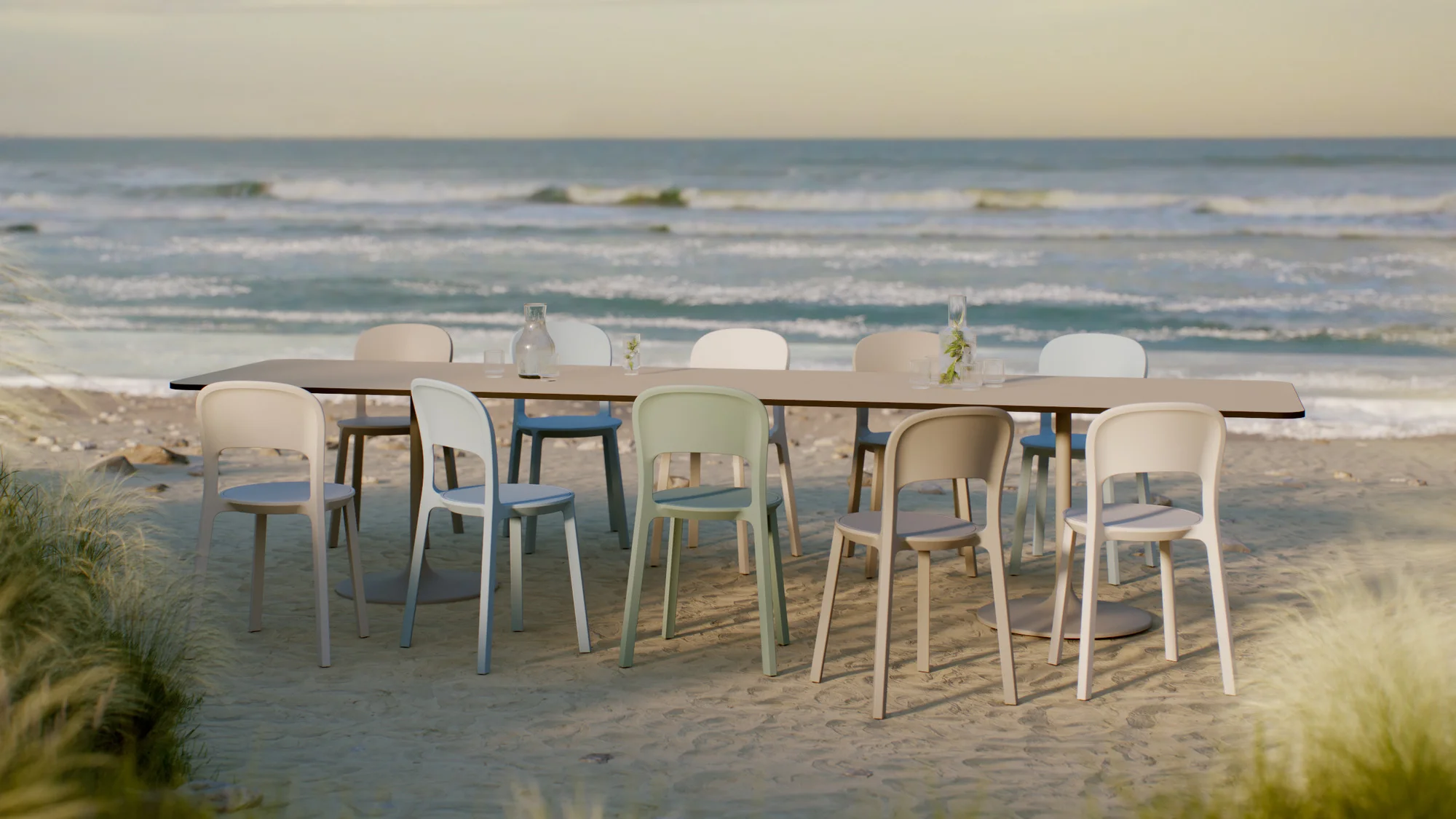 Ein zentrales Merkmal von NOOVO ist die nachhaltige Materialwahl: Der Stuhl besteht zu 100 % aus recyceltem Polypropylen – ganz ohne Glasfaserzusätze. Dieses sortenreine Material ermöglicht eine vollständige Wiederverwertung und reduziert effektiv den ökologischen Fußabdruck. Produziert wird ausschließlich in Europa, wobei alle Materialquellen lückenlos rückverfolgbar sind. Besonders clever: Die Sitzflächen lassen sich bei Bedarf austauschen – ein einfaches Prinzip, das die Lebensdauer des Produkts erheblich verlängert.