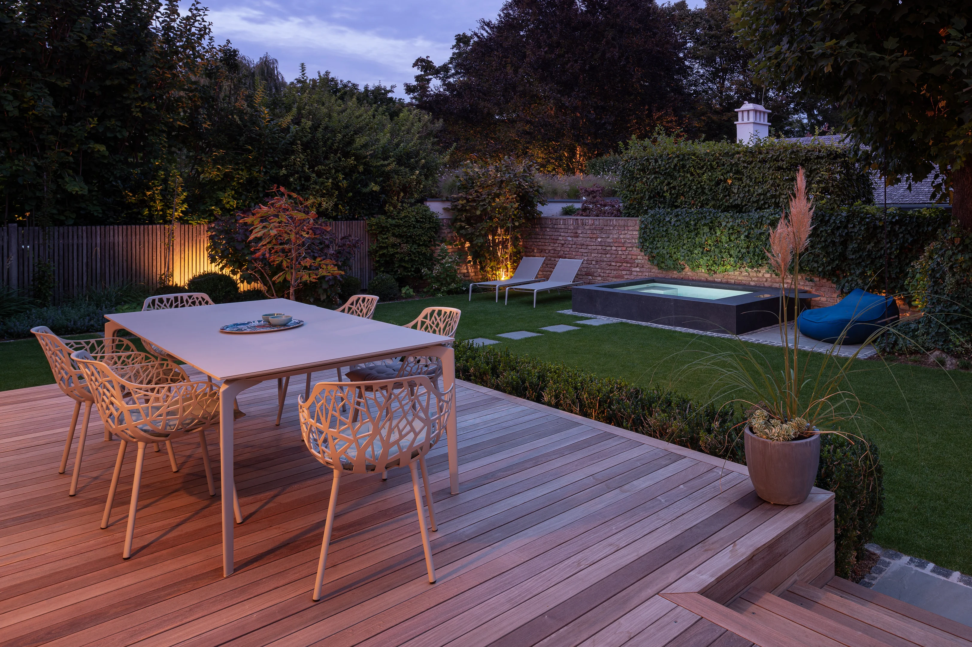 Und dank moderner Smart-Living-Technik wird die Steuerung von Licht und Bewässerung vom Wohnhaus aus zentral kontrolliert – elegant, effizient und perfekt abgestimmt auf die Bedürfnisse eines Gartens im Wandel der Jahreszeiten.