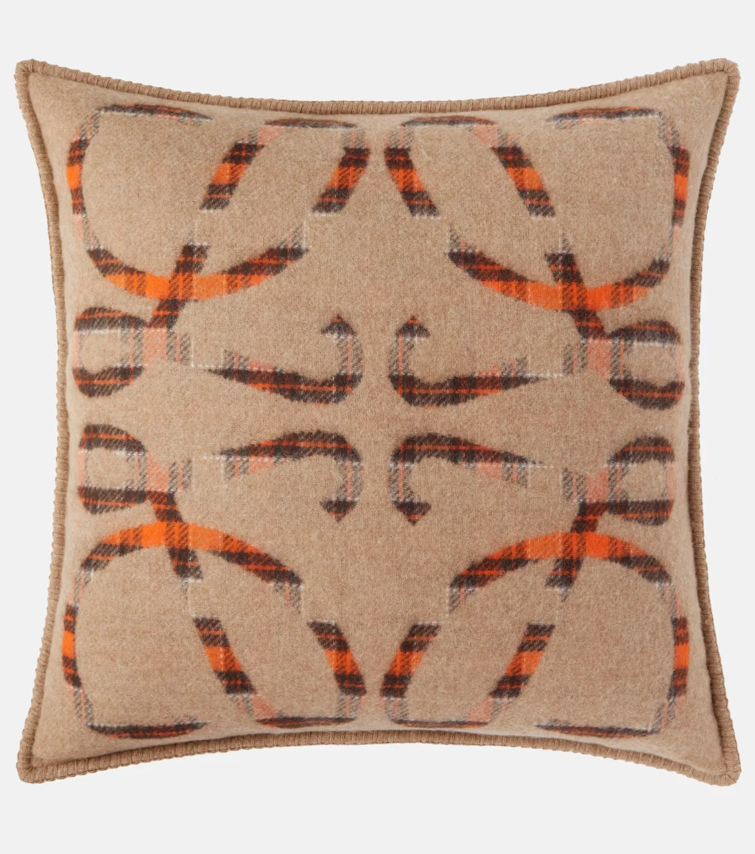 Das Anagram-Kissen von Loewe kombiniert weiche Wolle mit luxuriösem Kaschmir in einem sanften Beigeton. Das ikonische Anagram-Motiv verleiht dem Design feine Raffinesse und fügt sich harmonisch in warme Wohnkonzepte ein. Ein elegantes Detail, das Komfort und Stil vereint.