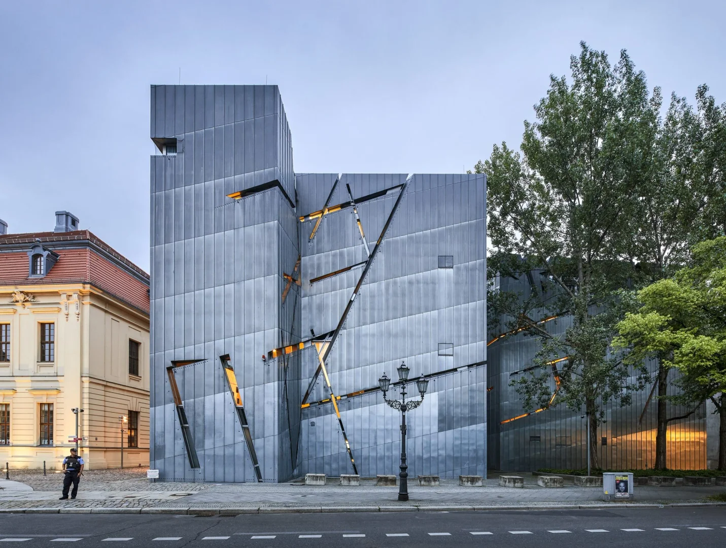 Libeskinds Konzept speist sich aus vier zentralen Inspirationsquellen. Ausgangspunkt ist die Beziehung zwischen jüdischer Tradition und deutscher Kultur vor der Schoa, dargestellt durch Persönlichkeiten wie Paul Celan, Max Liebermann, Heinrich von Kleist, Rahel Varnhagen oder Friedrich Hegel. Aus ihren Wohnadressen entwickelte er ein Liniennetz, das die Form des Gebäudes und die Anordnung der Fenster prägt. Weitere Impulse stammen aus Arnold Schönbergs unvollendeter Oper Moses und Aron, dem Gedenkbuch des Bundesarchivs für die Opfer der nationalsozialistischen Judenverfolgung sowie Walter Benjamins Essay Einbahnstraße.