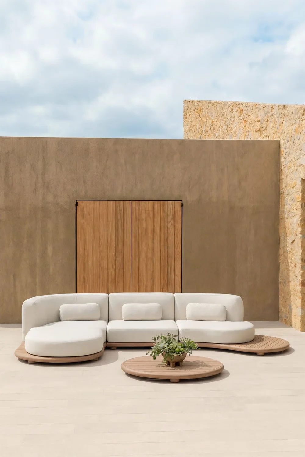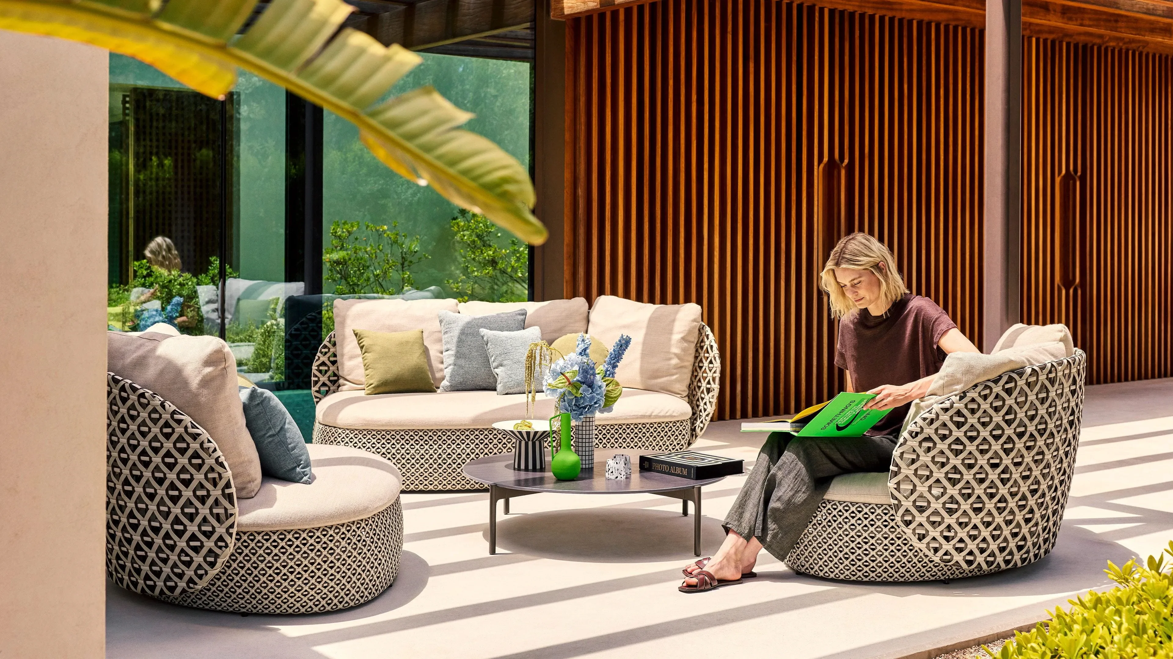 Ein weiterer Trend bewegt sich weg von starren Rastern hin zu fließenden Übergängen. Designer wie Sebastian Herkner prägen mit Kollektionen wie MDEAR eine neue Ästhetik der Geborgenheit. Die organischen Module von Dedon weisen sogenannte „Solitär-Stärke“ auf : Ein einzelnes Element ist so ausdrucksstark, dass es als freistehender Lounge-Chair auf einem Stadtbalkon funktioniert, während mehrere Module zusammen eine weiche, einladende Sitzlandschaft bilden. Es ist ein haptisches Erlebnis, das die Grenze zwischen „drinnen“ und „draußen“ endgültig aufhebt.